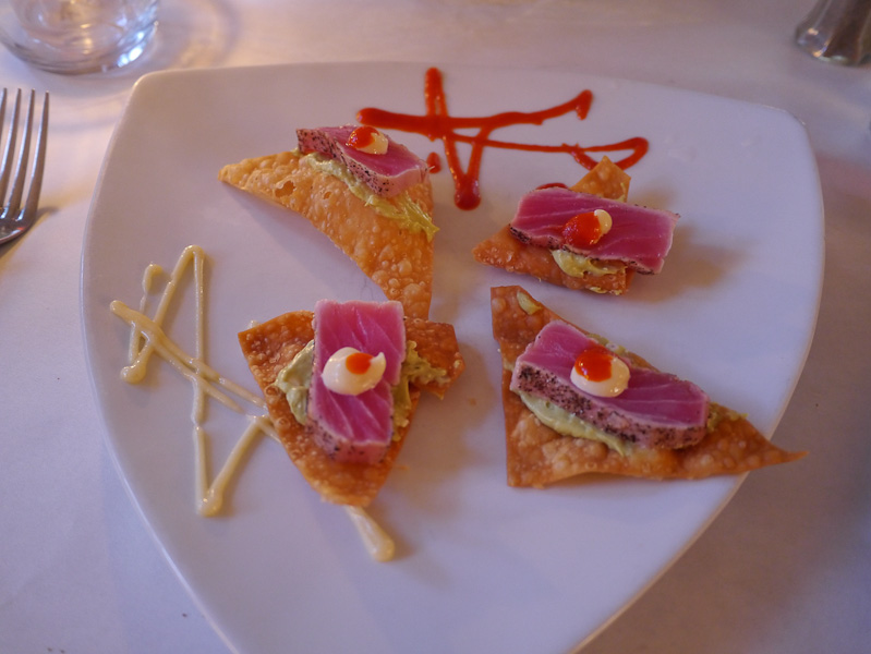 My husband and I ordered two appetizers and sampled each others. The Seared Ahi Tuna Stack with Crispy Wonton, Avocado Cream Cheese and Spicy Miso Mayo and the Seared Jumbo Sea Scallop with Roasted Pineapple and Jalapeño Salsa. The presentation was beautiful and the appetizers were perfectly balanced for flavor and heat.