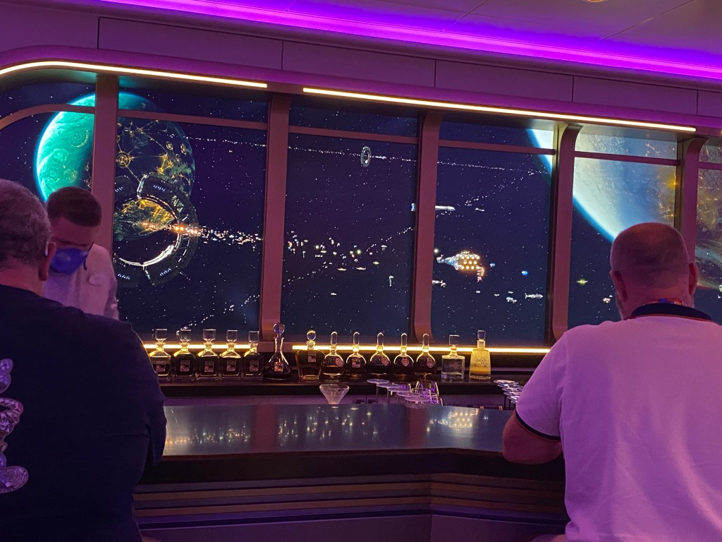 The most anticipated new lounge is the “Star Wars: Hyperspace Lounge” where guests can sip out-of-this-world libations while staring out a 20-foot-wide-widow into space with views that change every 7-10 minutes. At night it’s an adults-only space, but during the day Star War fans of all ages can visit the lounge. They even serve non-alcoholic cocktails to those too young to drive a hyperspace vehicle.